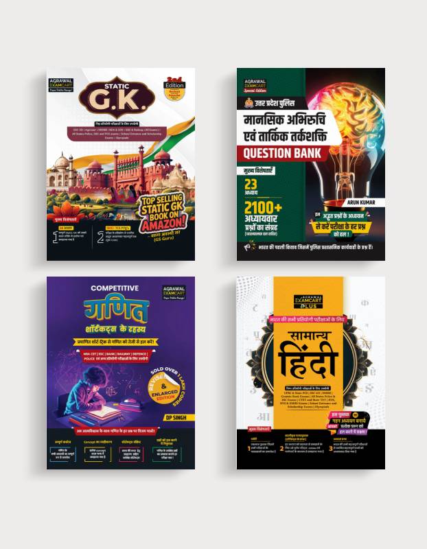 Examcart Competitive Math Text Book By DP Singh Sir + Static GK Text Book + Samanya Hindi Text Book + Maansik Abhiruchi Evam Tarkik Tarkshakti Question Bank For 2025 Exam in Hindi (4 Book Combo)