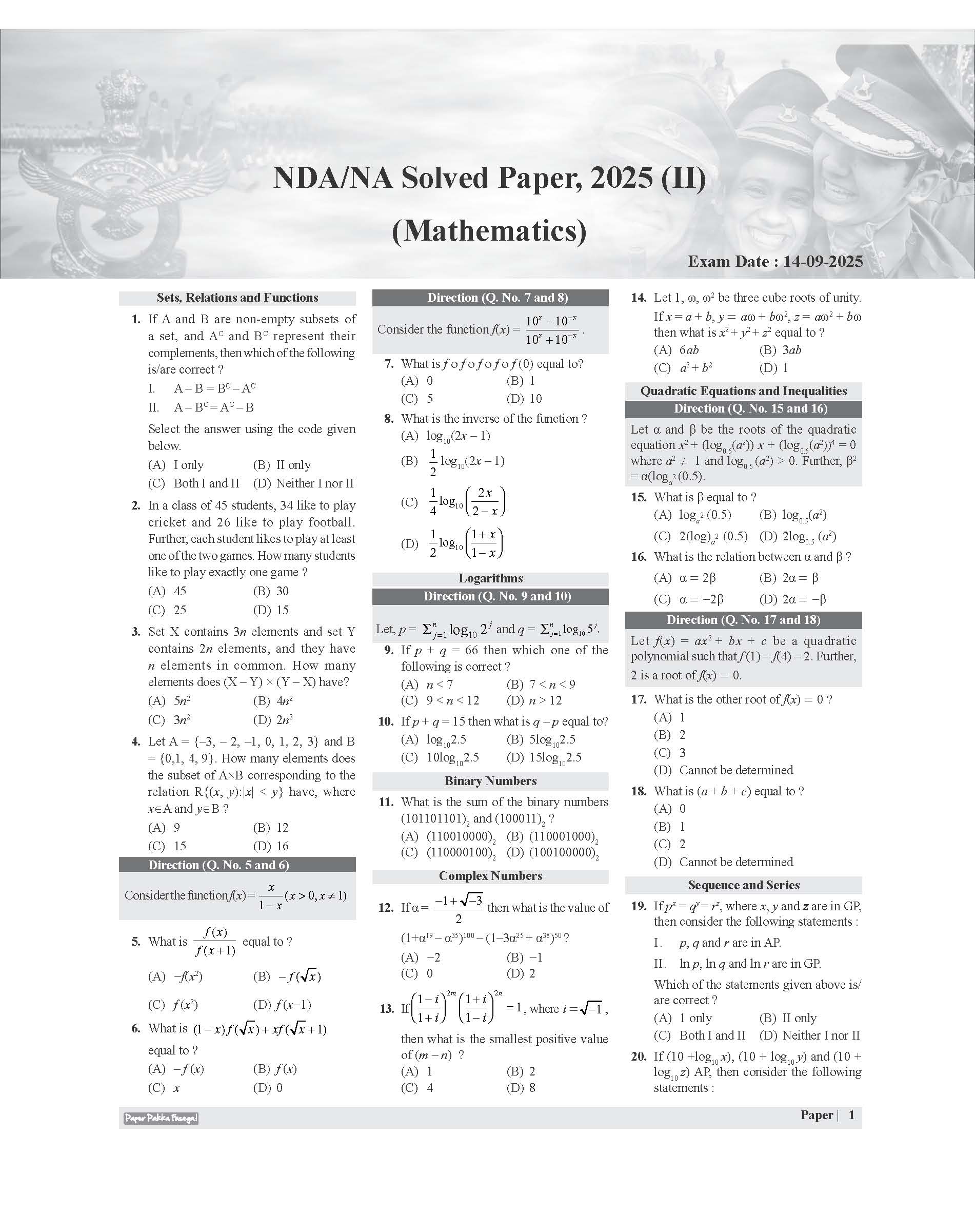- The NDA Maths previous year papers book includes 26 solved question papers from 2012 to 2025.
