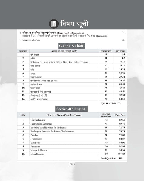 - Subjects covered- सामान्य अध्ययन, सामान्य गणित, मानसिक क्षमता, हिन्दी भाषा