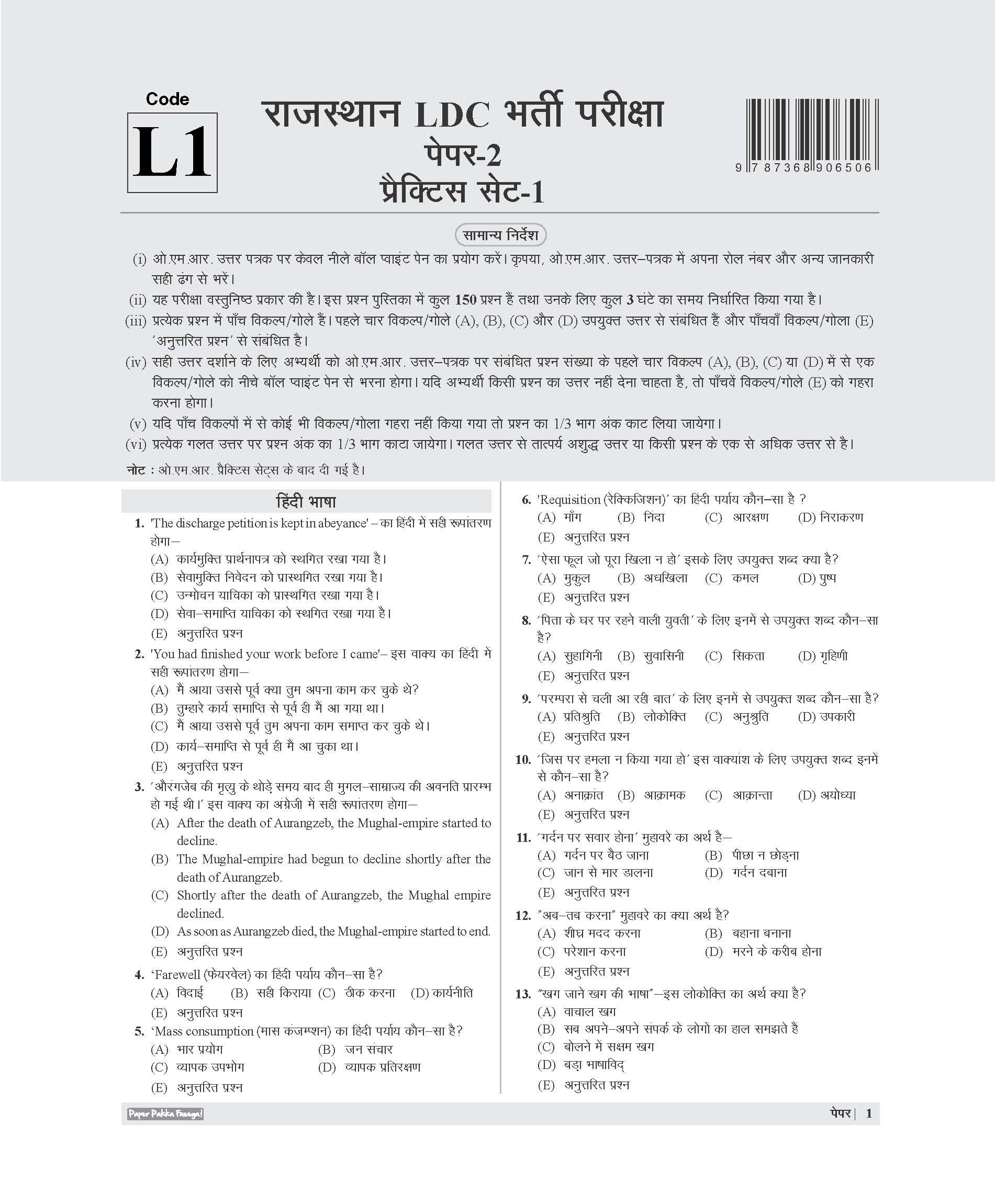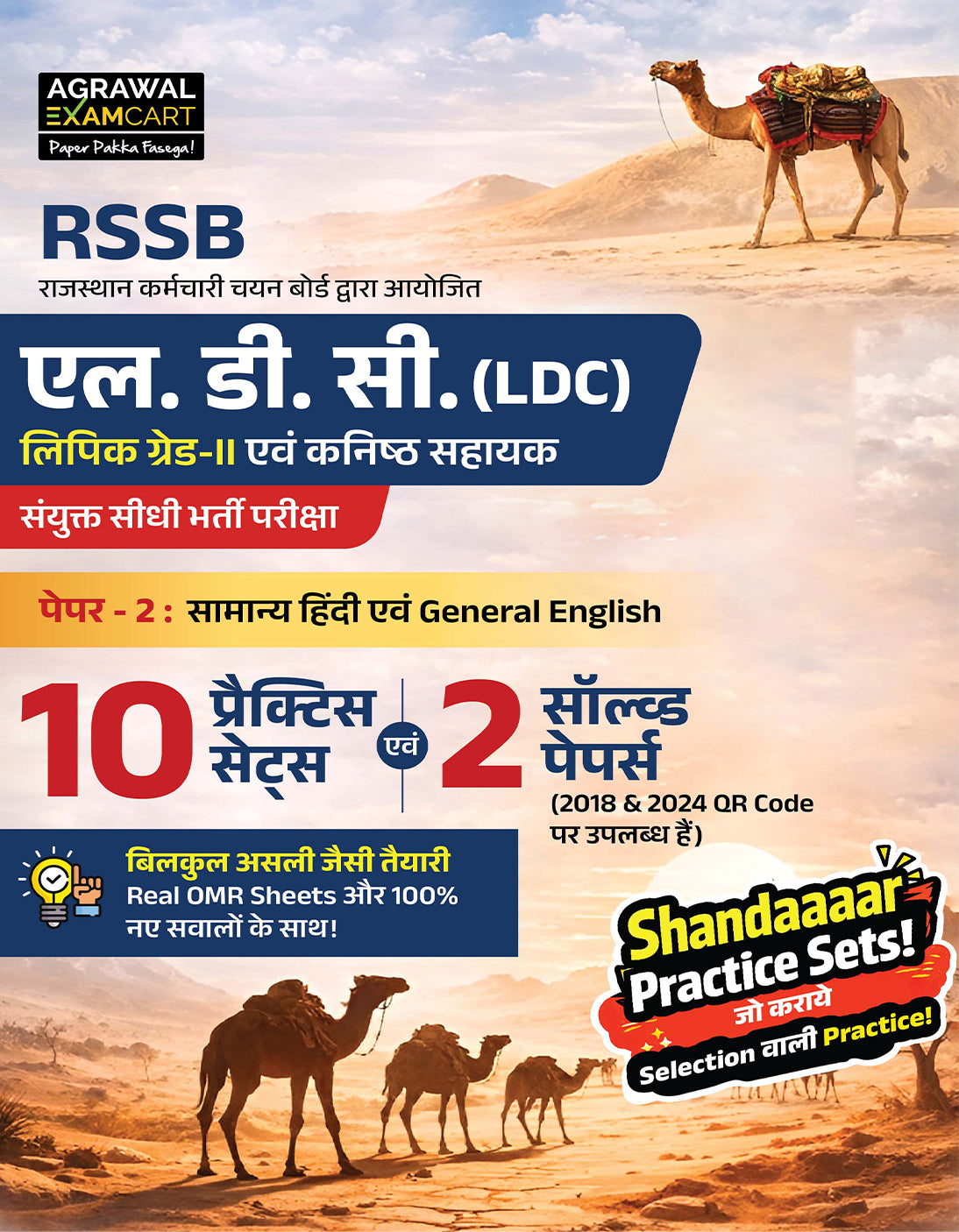 Examcart RSSB Rajasthan LDC Lipik (Clerk) Grade 2 and Kanistha Sahayak (Junior Assistant) Paper 2 Samanya Hindi Evam General English Practice Sets Book For 2026 Exam In Hindi
