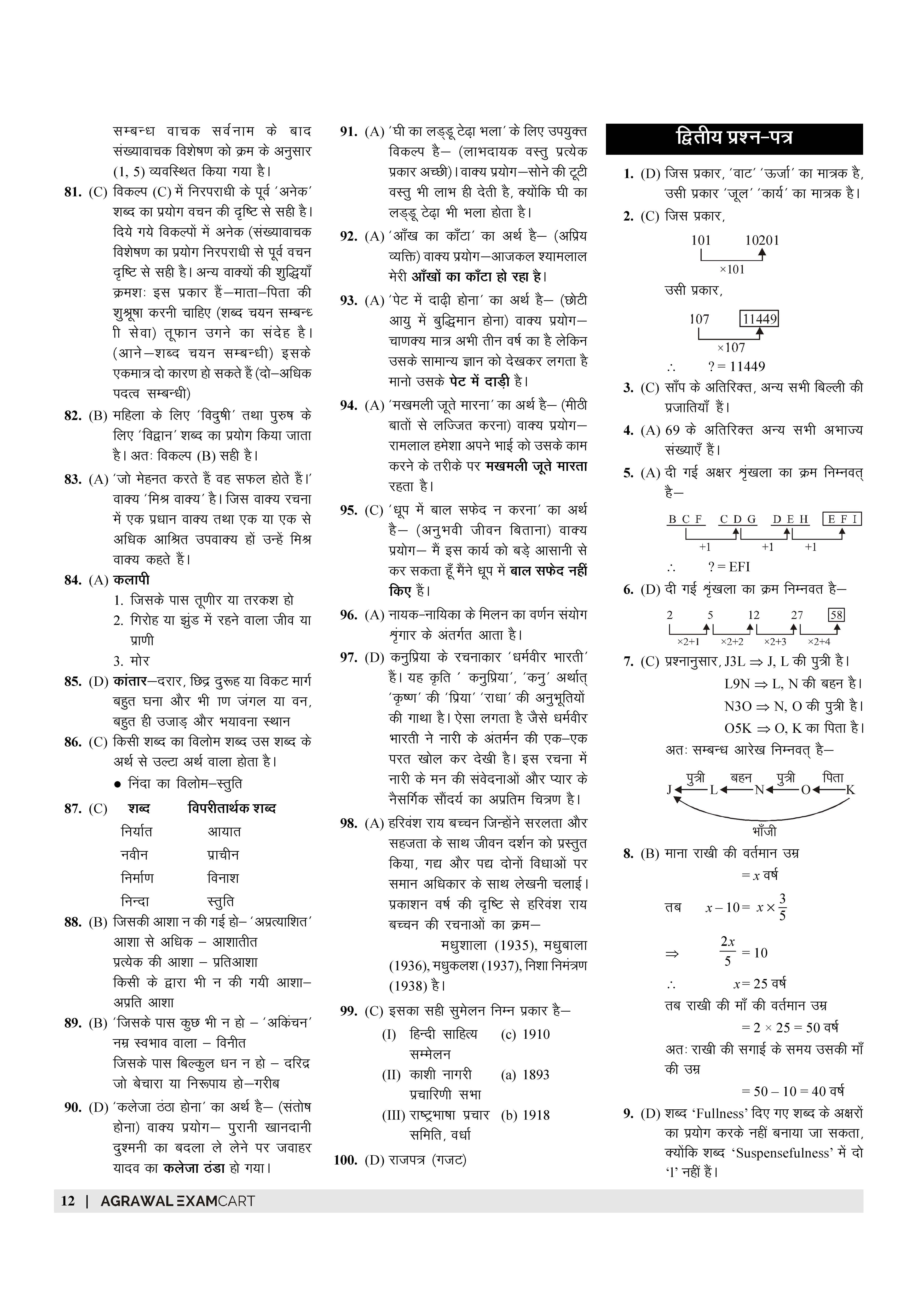 Each section is framed in simple and easy Hindi language, making it ideal for concept application, self-assessment, and revision before the exam.