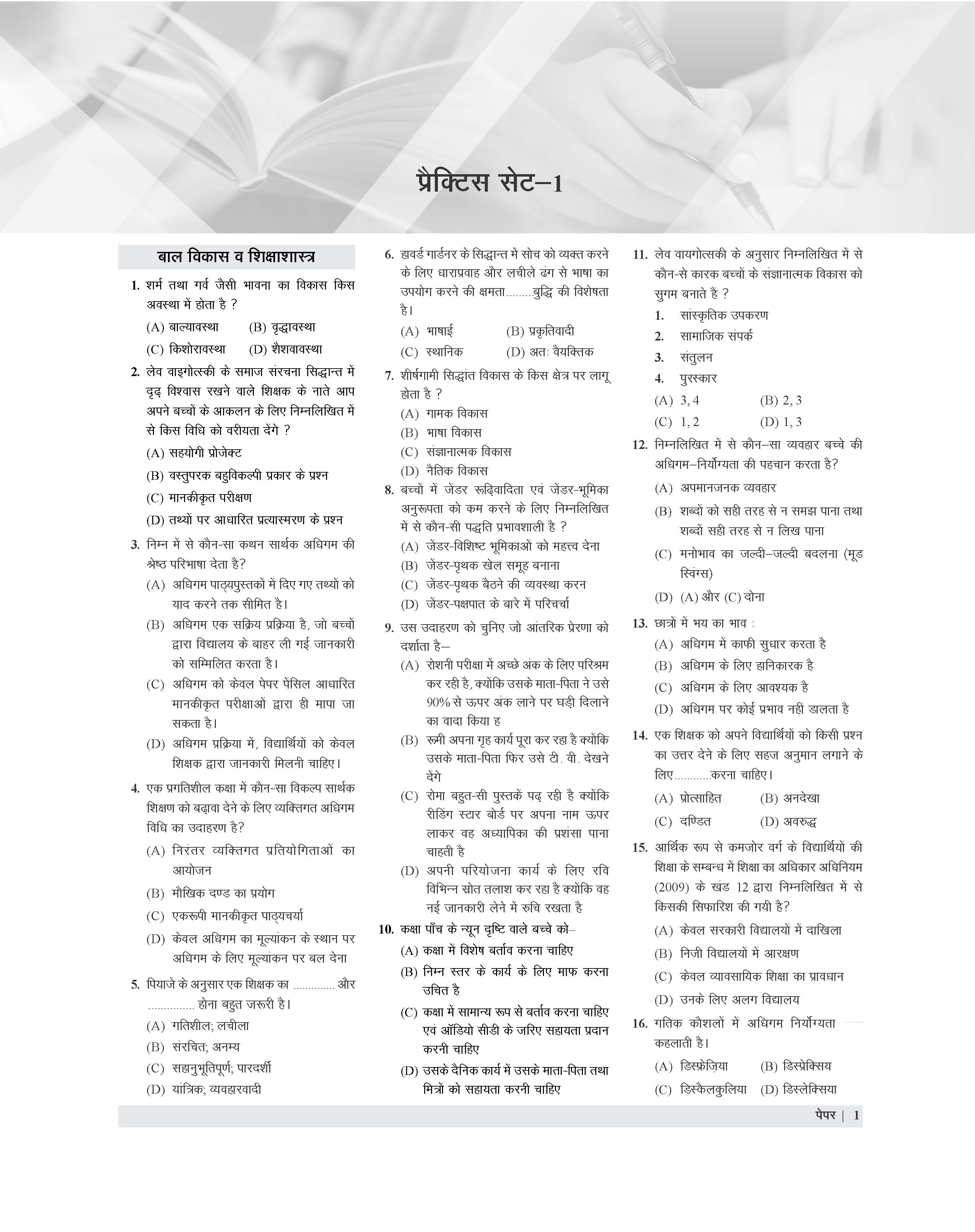 • Regular practice with these sets helps students understand the exam structure, improve accuracy, and build confidence for the upcoming CTET Paper 1 exam.