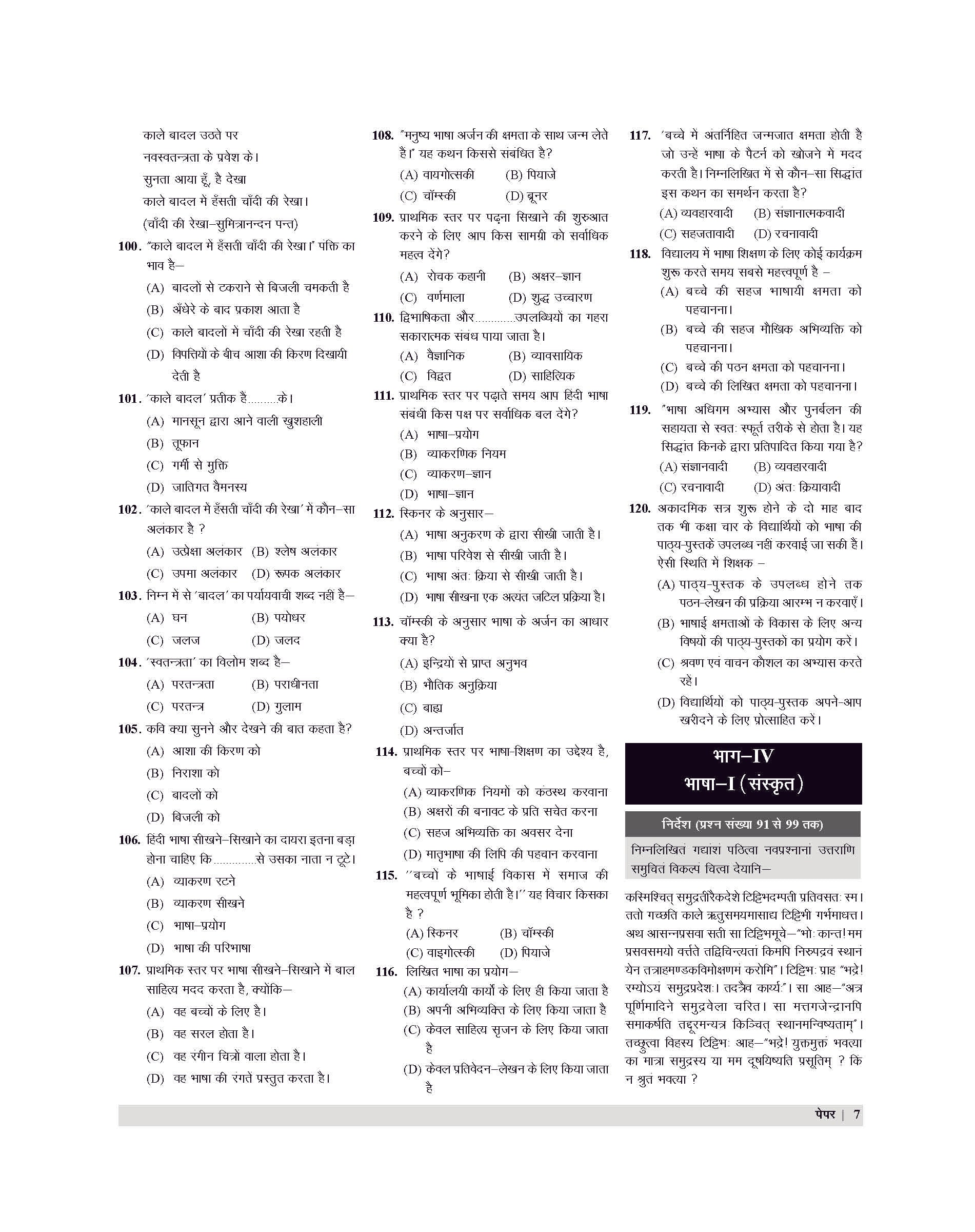 Covers Child Development & Pedagogy, Hindi (Language I & II), English (Language I & II), Maths, and EVS.