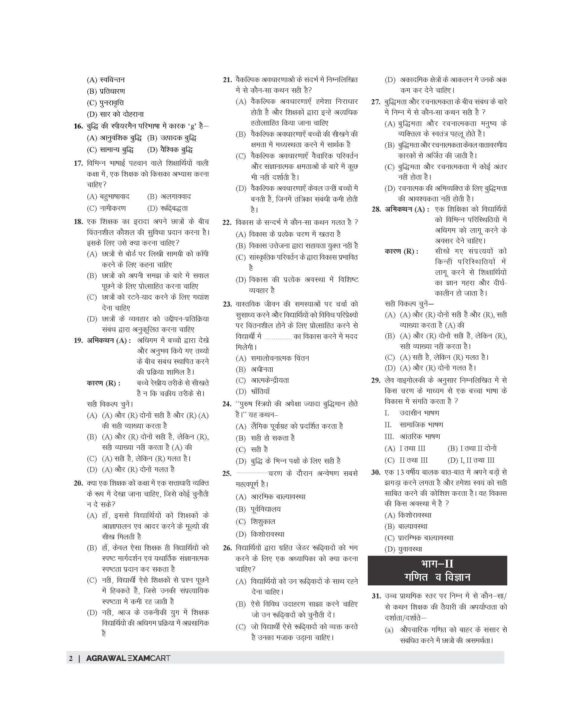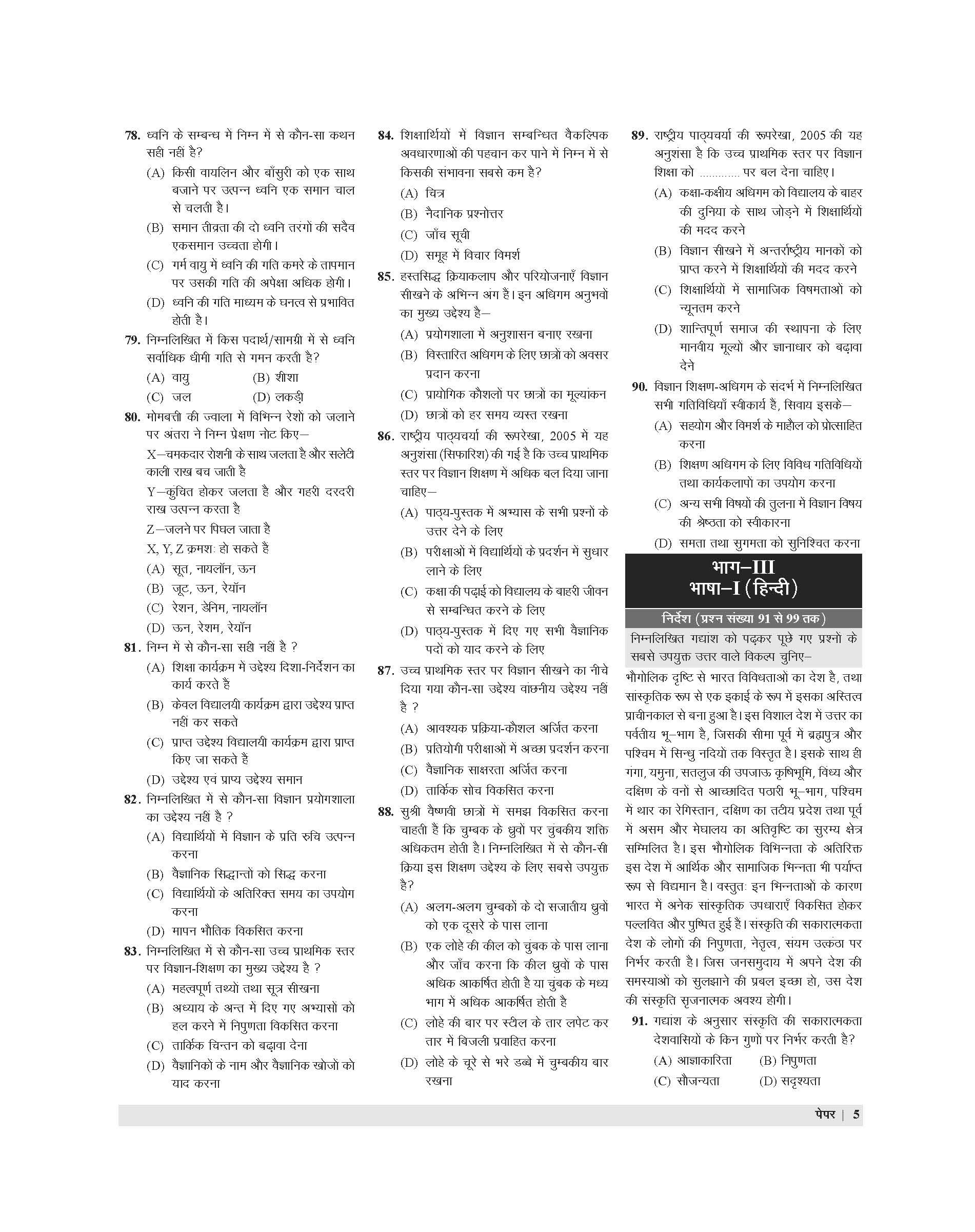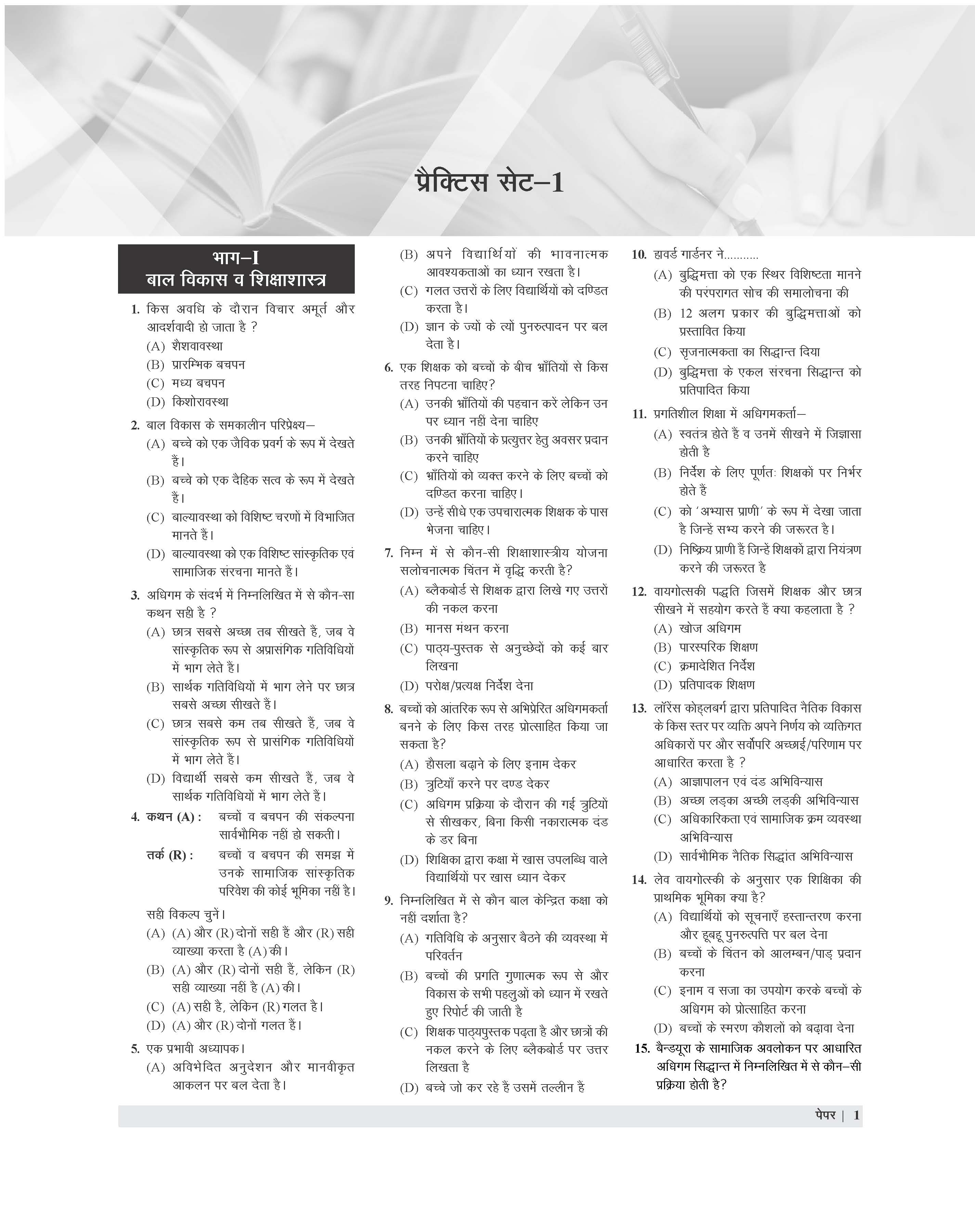 Covers Child Development, Hindi, English, and Math and Science completely.