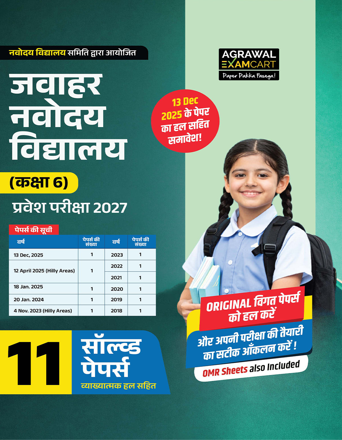 - JNV class 6 previous year question papers book includes JNV solved paper from 2018 to 2025.
