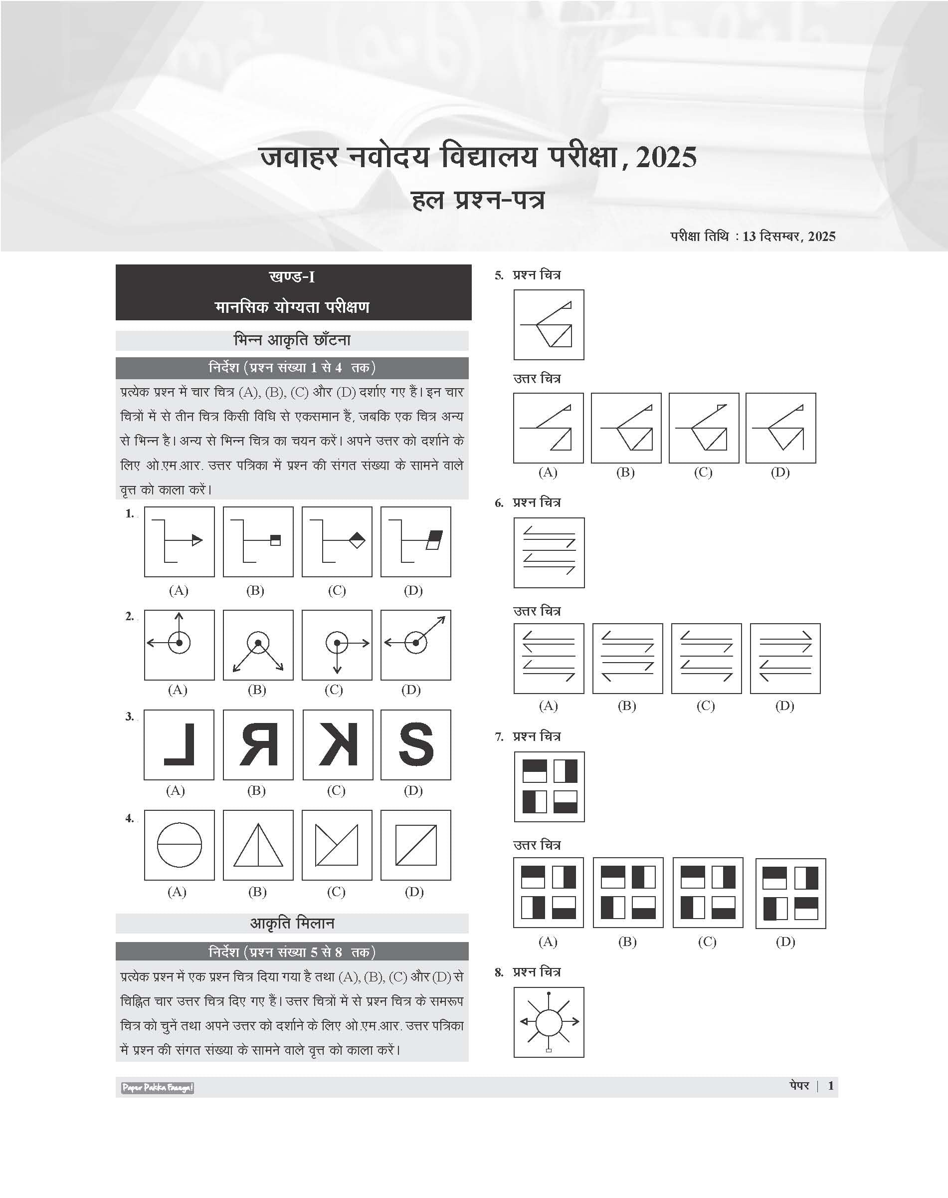 - JNV solved paper class 6 in Hindi PDF download.