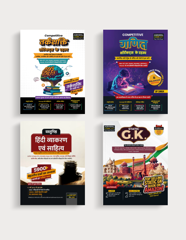 • This is a Combo of 4 books -  Math + Reasoning + Hindi Vyakaran + Static GK For All Government Competitive Exam In Hindi