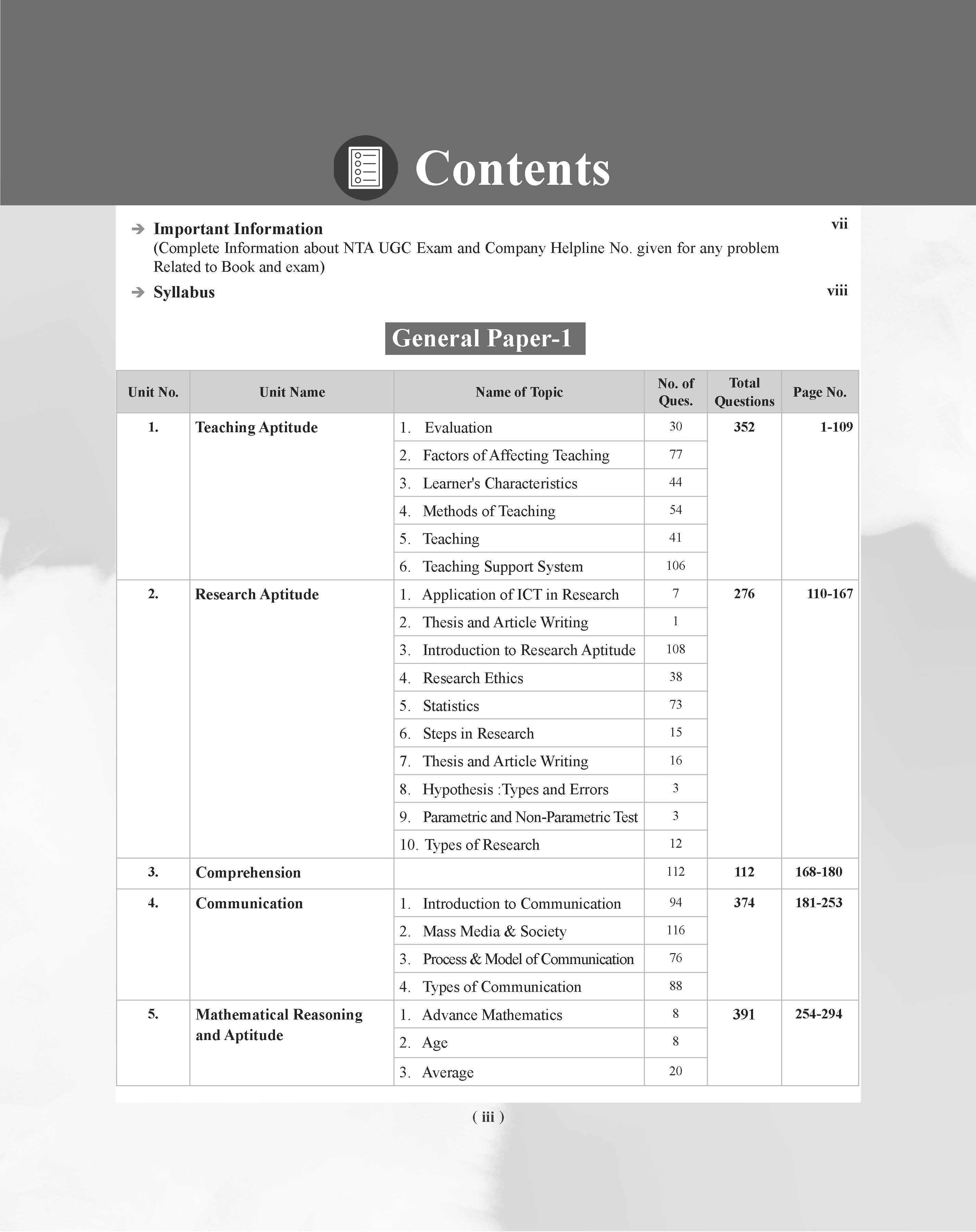 Covers all 10 units of UGC NET General Paper-1 in a unit-wise & topic-wise format.