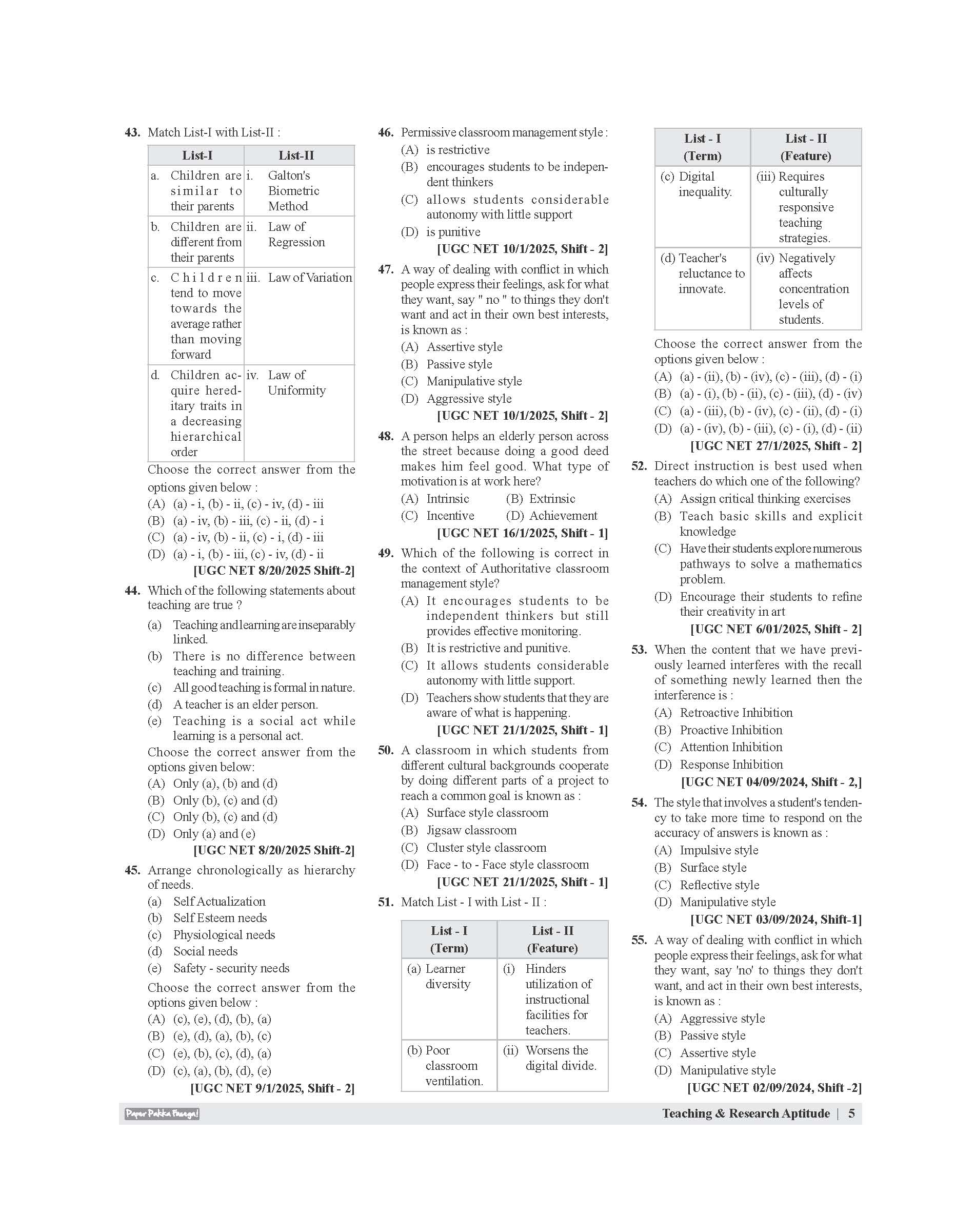 The NTA UGC NET General Paper-1 Teaching & Research Aptitude (PYQs) Book is specially designed for candidates preparing for UGC NET, JRF, SET, Ph.D. Entrance, and Assistant Professor examinations conducted by the National Testing Agency (NTA).